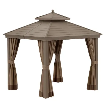 Gazebo in Alluminio con Copertura e Tende in Poliestere Marrone